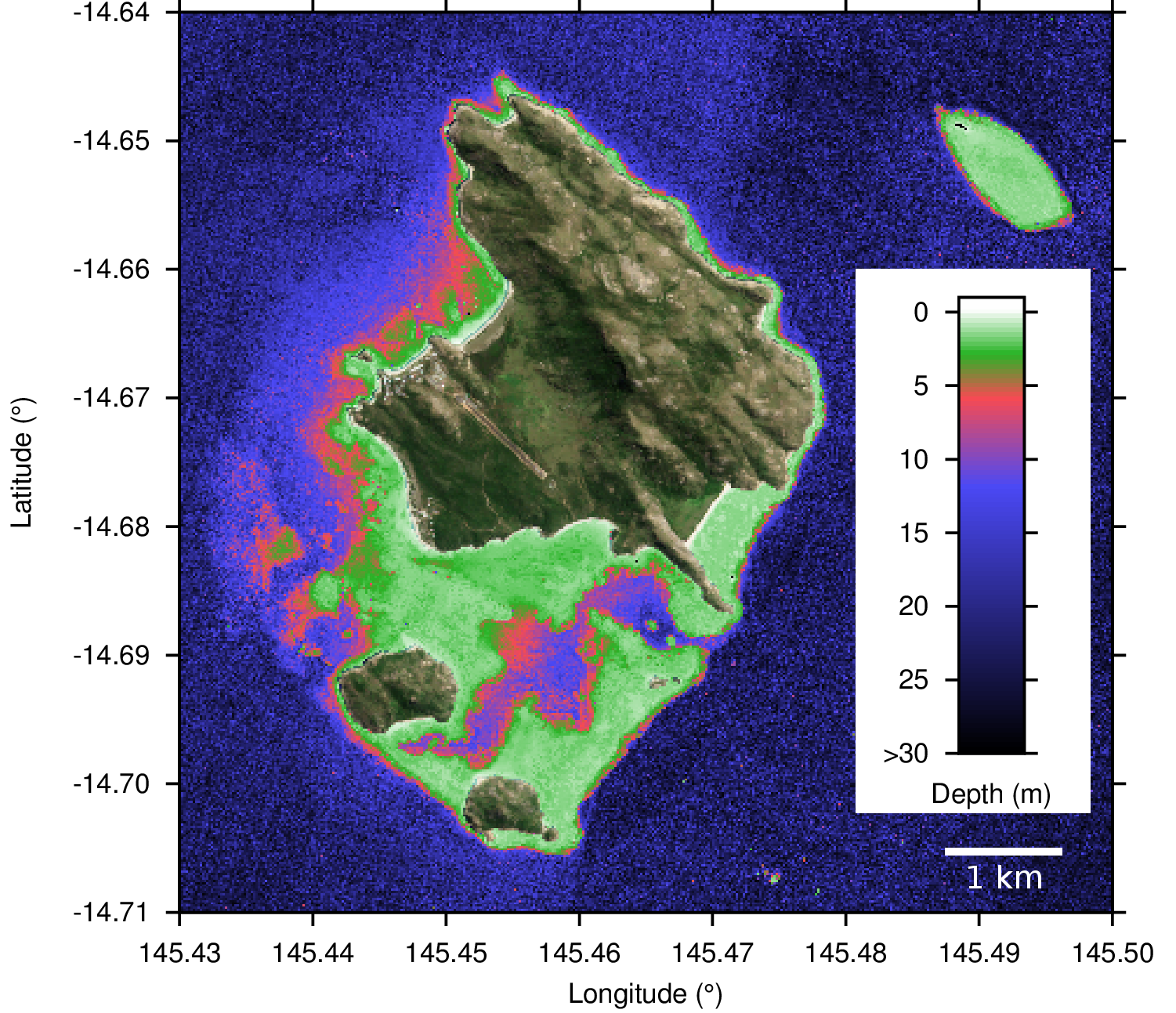 - Derivation of High-Resolution Bathymetry from Multispectral Satellite Imagery